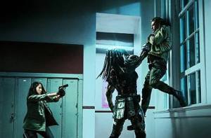 Tak właśnie trafia do USA i do autobusu pełnego świrów. Nie psychopatów i nie oszołomów, ale właśnie świrów, którzy przez większą część projekcji ubarwiają ją mniej lub bardziej udanymi żartami. Gdyby nie one, Predator byłby klasycznym kinem science-fiction klasy B sprzed lat, pełnym strzelanin i pogoni, okraszonym obowiązkową teorią spiskową oraz mało wiarygodnymi postaciami agentów. Klimat lat osiemdziesiątych przywołuje też postać jego syna, młodego autystyka, który dopada przysłane przez ojca gadżety i bez większych problemów rozszyfrowuje technologię obcych.