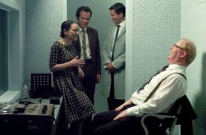 Film Eksperymentator rozpoczyna się właśnie od tego eksperymentu. Stanowi punkt wyjścia, ukonstytuowanie się Milgrama (Peter Sarsgaard – Robot i Frank, Blue Jasmine) jako naukowca, który próbuje zrozumieć to, co działo się w Europie podczas drugiej wojny światowej. Później oczywiście śledzimy dalsze jego losy, kolejne warianty tego samego badania, a także zupełnie inne, nie mniej ciekawe eksperymenty społeczne. Przyglądamy się też jego związkowi z Sashą (Winona Ryder – Worricker: Drugie starcie, Sexlista 101), która odegrała pewną rolę w jego poszukiwaniach. Przede wszystkim jednak odkrywamy, że środowisko akademickie nie było zachwycone Milgramem. Uważało stosowane przez niego metody za barbarzyńskie, choć tak naprawdę nikogo prądem nie rażono!