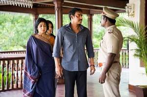 Główny wątek wyłania się z tej historii dopiero po trzech kwadransach. Skupia się na nieporadnych na pierwszy rzut oka próbach ukrycia, że doszło do zabójstwa. Vijay topi samochód chłopaka w kamieniołomie, a także szuka dla rodziny alibi. Dopiero z czasem okazuje się, jak bardzo jest sprytny. A wszystko dzięki filmom, których się naoglądał. Ciekawym wątkiem jest policyjna przemoc, która – choć nielegalna – wciąż bywa obecna na indyjskich komisariatach.