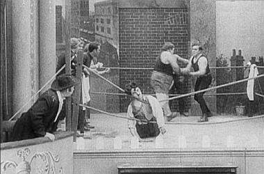 I rzeczywiście Cyclone Flynn (były bokser Edgar Kennedy) pojawia się w miasteczku i ma zamiar spuścić łomot każdemu, komu się wydaje, że można pomiatać mistrzem. Jako pierwszy na ringu staje właśnie Pug. Chwilę później sędzia (Charlie Chaplin) daje sygnał do rozpoczęcia pięściarskiego pojedynku… Pojedynku, w którym króluje slapstick, pięściarze co chwila przewracają się na ziemię, a i sędzia regularnie obrywa.