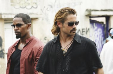 Cóż, być może Miami Vice zyskałoby w moich oczach, gdyby nie udawało remake’u Policjantów z Miami, popularnego serialu z lat 80. Bo choć bohaterowie, Sonny Crockett (Colin Farrell – 7 psychopatów) i Ricardo Tubbs (Jamie Foxx – Zakładnik), nazywają się tak samo, nie mają wiele wspólnego z oryginałami. Miami też nie odgrywa ważnej roli w filmie, zresztą część akcji dzieje się w zupełnie innym miejscu. Zniknęły też słoneczne kadry i malownicze pejzaże, ustępując miejsca ciemnej nocy. Gdzie palmy, ciągnące się po horyzont luksusowe jachty, budynki w stylu art deco, hiszpańskie dialogi? Gdzie szalona moda i wakacyjny klimat? Tęskno mi również do budującej klimat muzyki Jana Hammera, bo nie znaleziono dla niej zastępstwa.